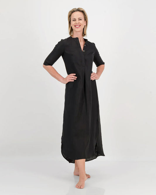 linen kurta dress - black