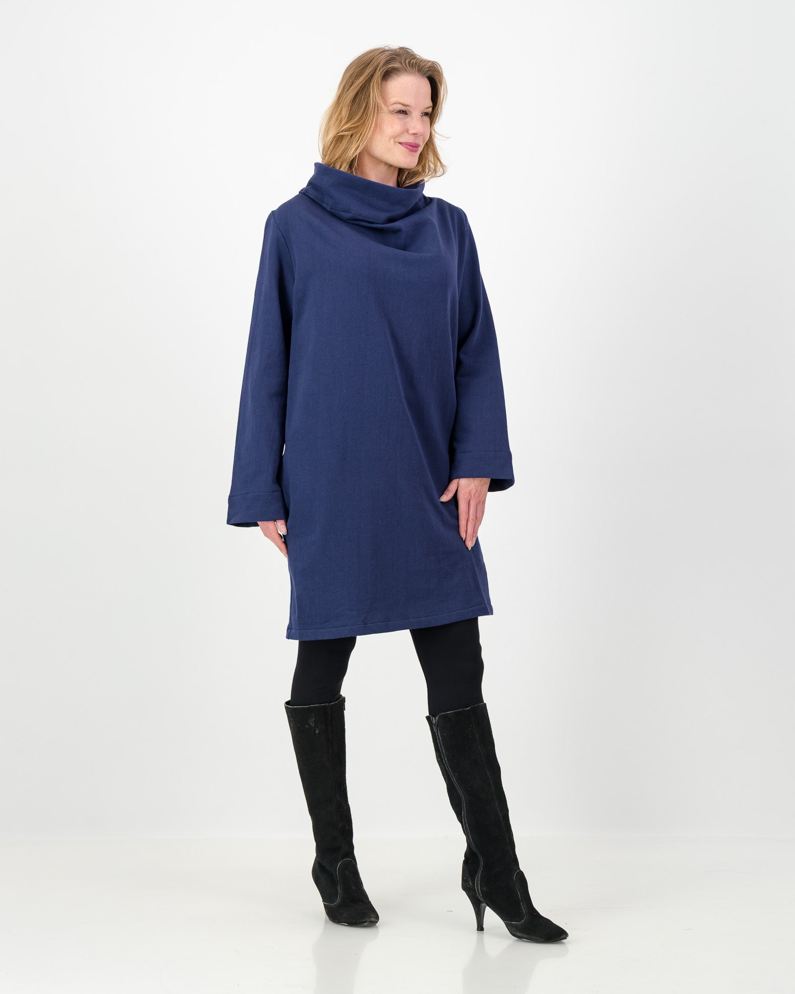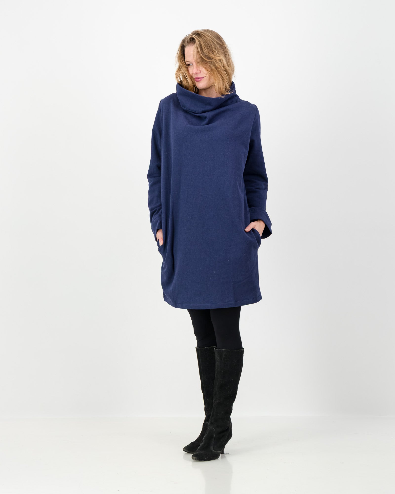 Leila is the ultimate winter dress for cozy comfort and effortless elegance. Crafted from a luxurious heavy cotton knit and lined with soft fleece, it feels as cozy as your favourite pajamas — without sacrificing sophistication.