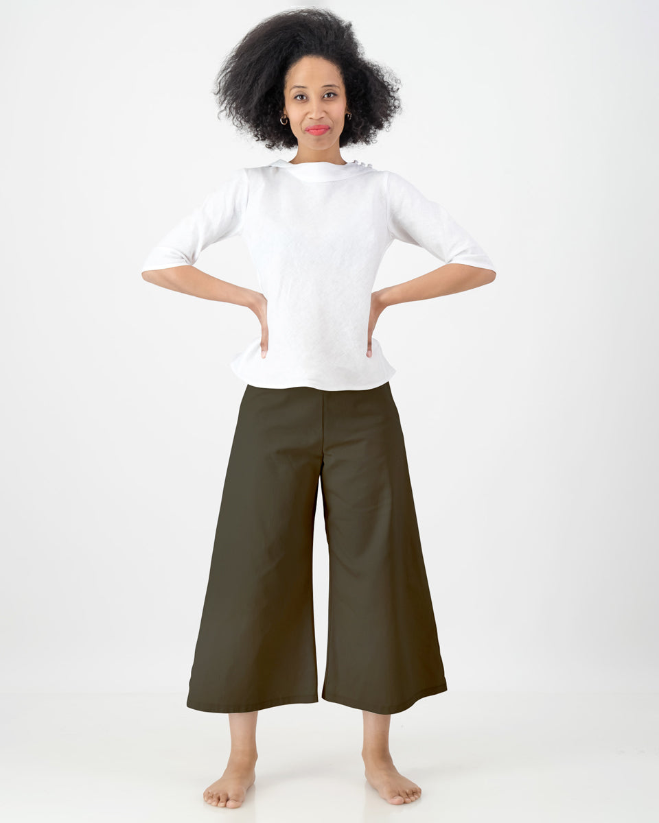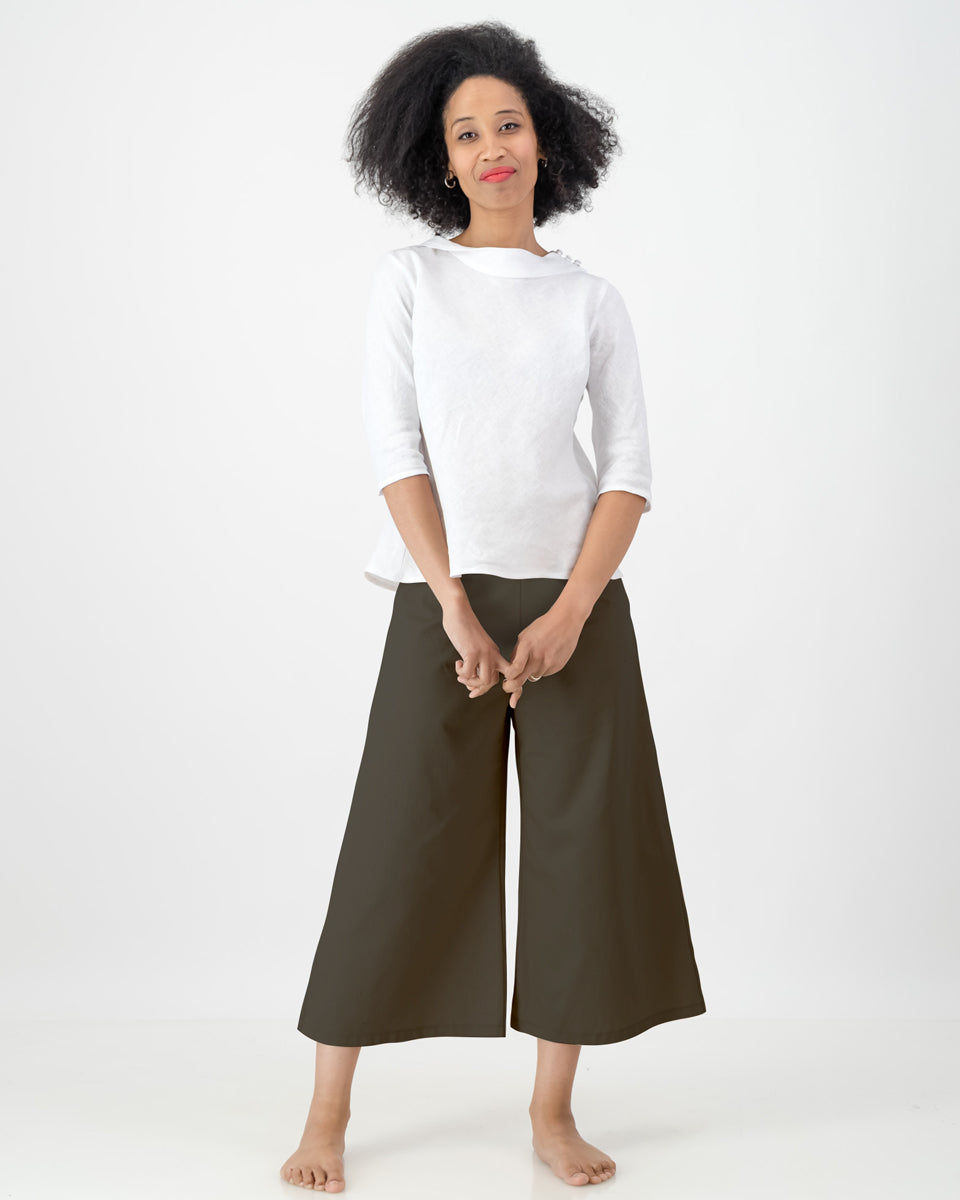 Pair them with a fitted top or a flowy blouse for an effortlessly chic daytime look. For evening wear, throw on a statement belt or heels for a polished, contemporary aesthetic. Whether you're exploring the city or attending a relaxed summer soirée, the caity culottes will be your go-to for versatility and style.