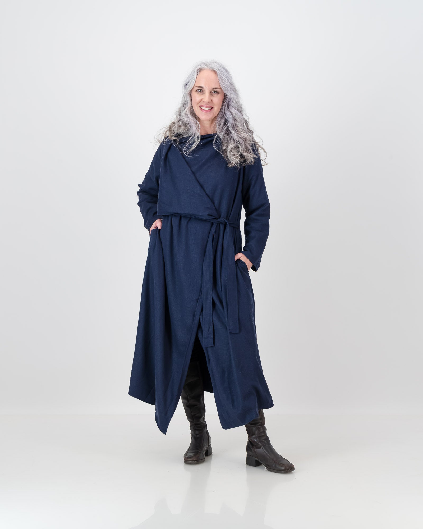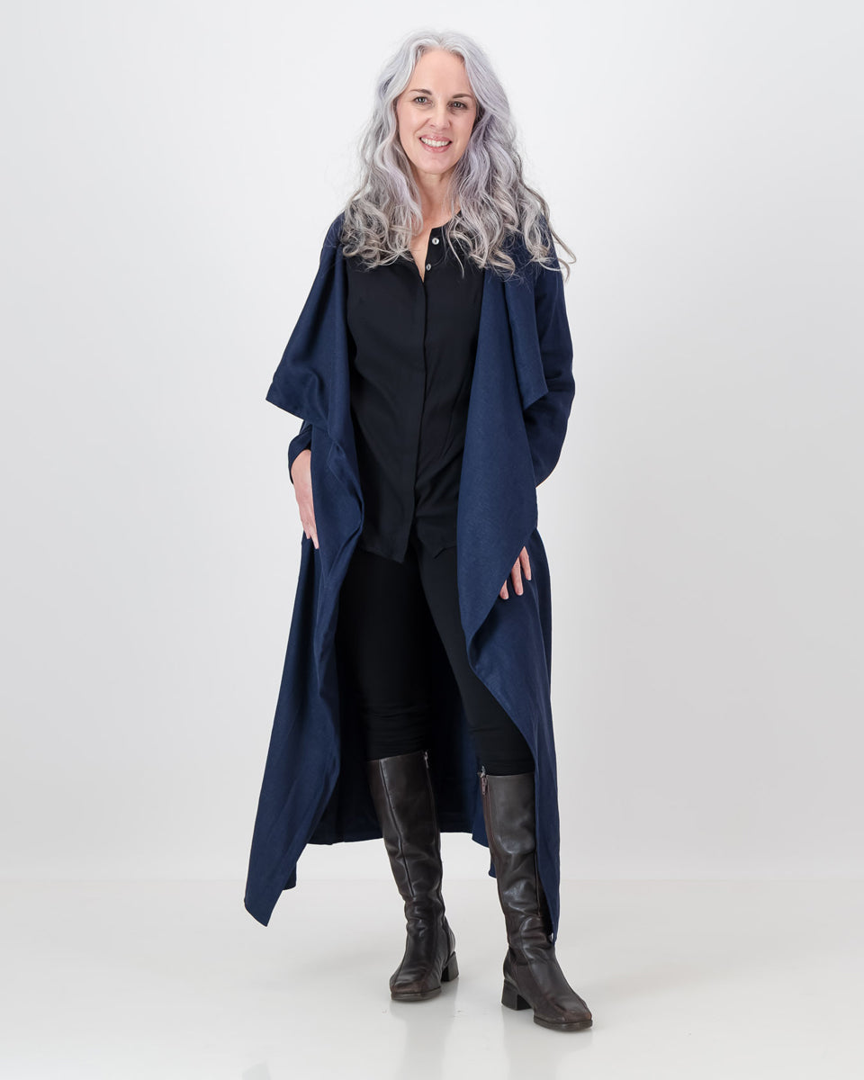 Discover LUNAR’s exquisite outerwear with the thandeka coat. Skillfully crafted from a super soft, drapey linen/rayon, the thandeka is the perfect winter staple. The waterfall silhouette drapes elegantly and can be worn multiple ways for different looks. Wear it with the collar up for a high neck look and cinch the waist or let the material billow and with a flattering waterfall drape.